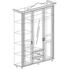 Фурнитура: ручка металлическая под бронзу , направляющие шариковые полного выдвижения, ножки пластмассовые на металлической опоре, петли, амортизаторы ударов, штанга для одежды в комплекте