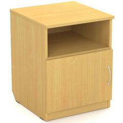 Прикроватная открытая тумба с ящиком Гм.ТП-3 Альтерна серии Проспект имеет закрытую конструкцию нижней части и открытую полку для личных вещей. Тумба комплектуется нерегулируемыми опорами.