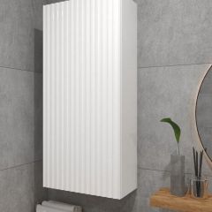 Белый шкаф с рифлёным фасадом будет отлично и стильно смотреться как в ванной, так и в туалете.
