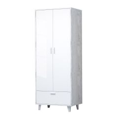 Шкаф Эго ШК-1, (на ножках) Бетон светлый/Белый глянец